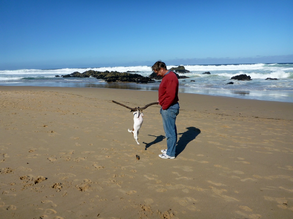 Heute hatten wir wieder einen perfekten Wintertag mit strahlend blauem Himmel und so fuhren wir zum Keurboomstrand für einen schönen Strandspaziergang mit unserem Hund. Kaum zu glauben, obwohl es so ein schöner Sonntag war, hatten wir diesen Traumstrand fast für uns alleine und Emma, unsere Jack Russel Hündin konnte ausgiebig den Stöckchen hinterherrennen.